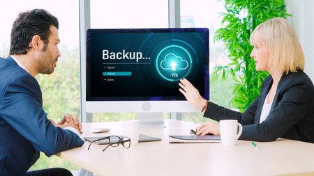 Backup Storage Data Internet Technology Business concept. Database storage cloud technology file data transfer sharing, cyber, big data information, internet banking application download upload brisk