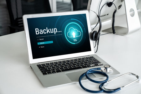 Storage backup download computing digital data transferring document database cloud on laptop communication concept transfer download sharing multimedia