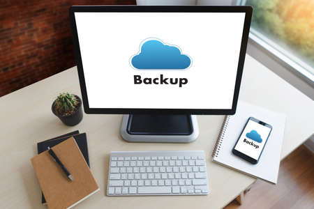 Backup Storage Data Internet Technology Business concept. Database storage cloud technology file data transfer sharing, cyber, big data information, internet banking application download upload brisk