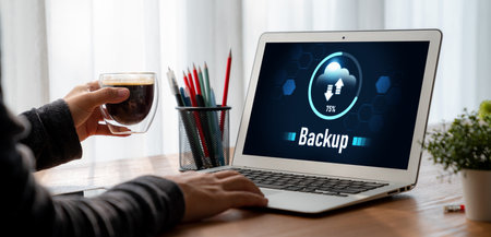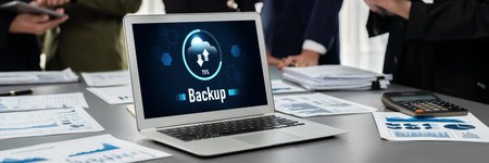 Backup Storage Data Internet Technology Business concept. Database storage cloud technology file data transfer sharing, cyber, big data information, internet banking application download upload snugly