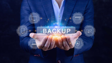 Data backup information protection cyber security concept on virtual screen
