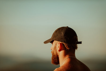 Sunlight man nature alone concept. Unity with the nature. Inner harmony.