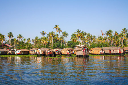 Allepey, India - January 30, 2011: Houseboats floating on the backwaters.of Allepey.