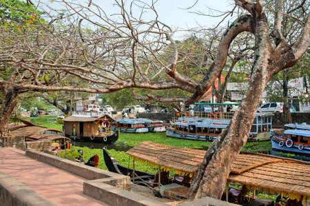 Tourist boat at Kerala backwaters,Alleppey,India.It's a chain of lagoons and lakes near Arabian Sea (Malabar Coast) of Kerala state in southern India