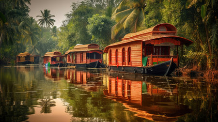 Houseboats on the backwaters of Kerala in Alappuzha. Generative Ai