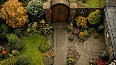 Delightful landscape of the courtyard of the house with greenery