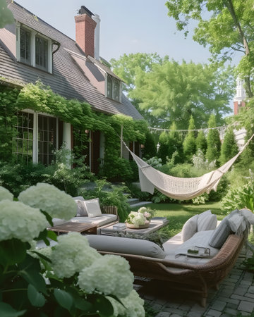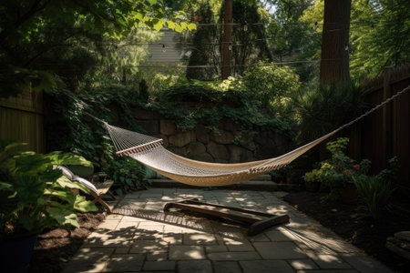 backyard escape with hammock, garden, and quiet surroundings, created with generative ai