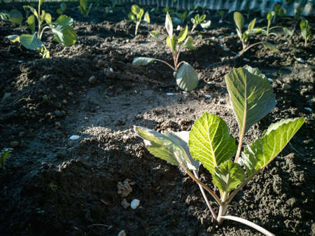Seedlings of white cabbage Brassica oleracea var. capitata L. Growing vegetables.