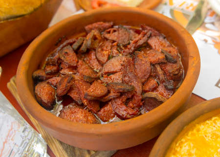 Typical dish of Brazilian cuisine called Feijoada, with black beans, bacon, sausage and pork