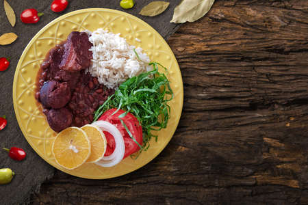 Feijoada dish of typical Brazilian food Top view.
