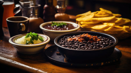 Feijoada Brazilian Food, Black Bean Brazil Dish, Meat Rice Brazil Cuisine Top View, Abstract Generative Ai Illustration