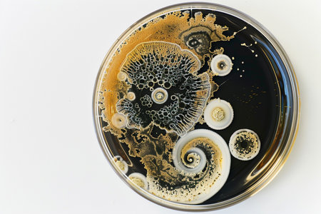 microbial culture with visible growth, in petri dish or test tube, created with generative ai