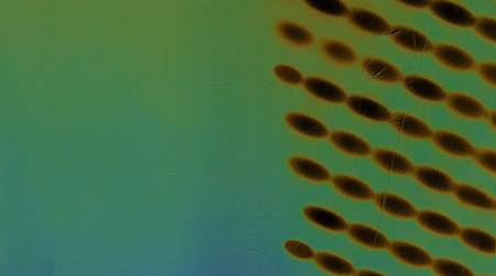 Abstract pattern showing a pattern of elongated ovals, with gradient colors from green to blue. Artistic image of oval shapes arranged in lines over a vivid background. Copy space