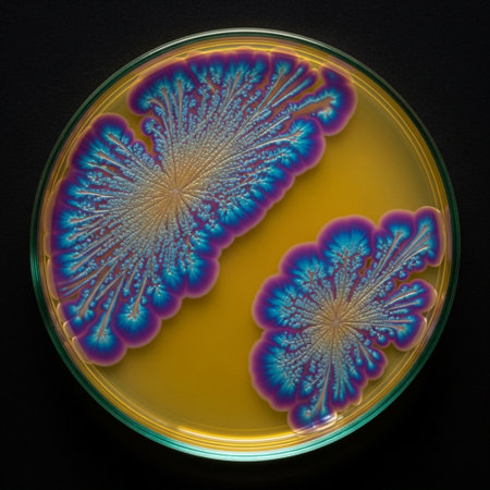 Vibrant microbial growth in petri dish experiment