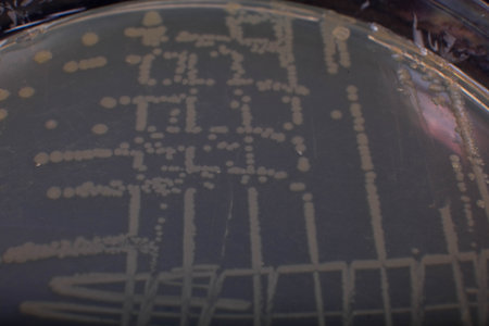 microbial culture growing on agar plate, with visible colonies and growth, created with generative ai