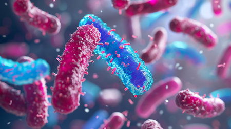 Bacterial Probiotics in Biomedical Science: Microscopic Medicinal Approach for Digestive Health, Stomach Care, Treating Escherichia Coli, AI Generated