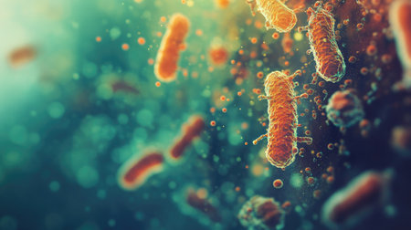Close-up view of bacteria in a vibrant microscopic world, showcasing intricate details and colorful structures.
