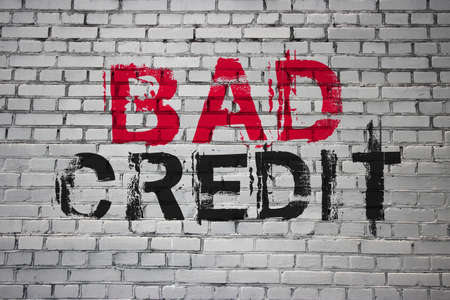 Bad Credit words on Brick Wall art like Graffiti motivational call written on the wall.. Business photo showcasing unpaid hopeless debt . Financial business crisis concept.