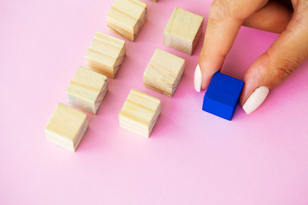 A pile of colorful wooden blocks with a single block in the middle, AI