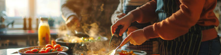 Family Cooking in Cozy Kitchen Preparing Fresh Vegetables and Steaming Meals.