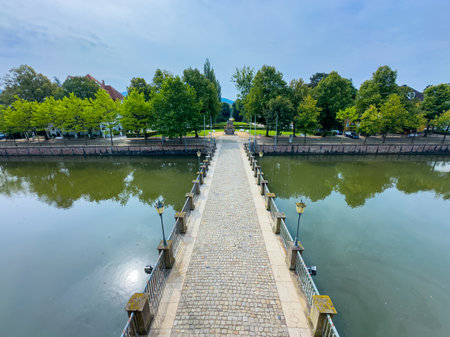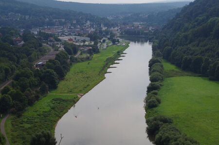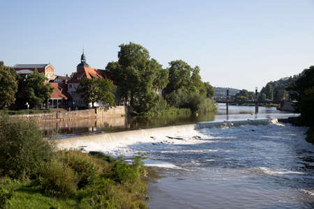 View at the weir and bridge of the river Weser near Hamelin