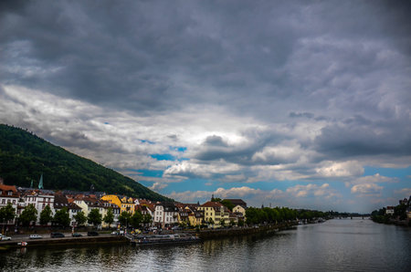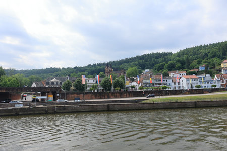 riparian city view of Heidelberg in Germany at summer time