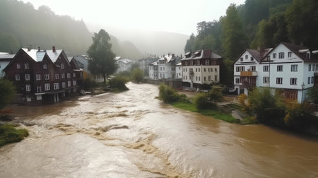 flood due to heavy rainfall at Neckargemund at the Neckar river in southern Germany in early summer