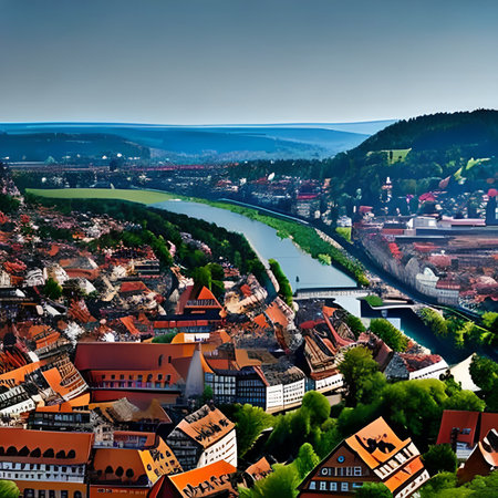 Aerial view of the village of Heidelberg, Germany.