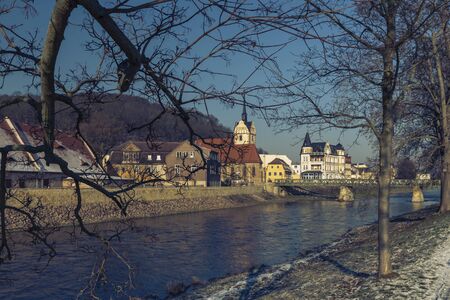 beside the white elster with a view of gera untermhaus, thuringia germany