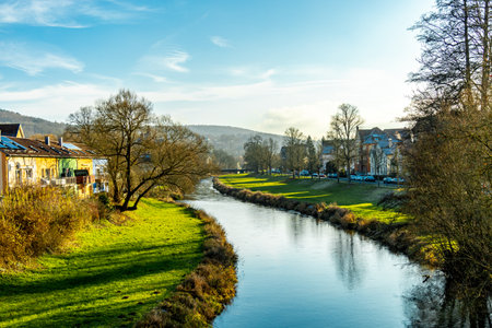 View of Old Beyenburg in autumn colors during a cloudy morning. Wuppertal / NRW / Germany. Landscape photography