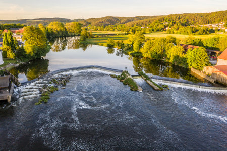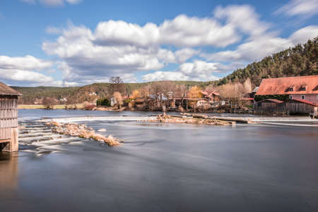 Barrage and weir of the river Regen in Markt Regenstauf in the Upper Palatinate, Germany