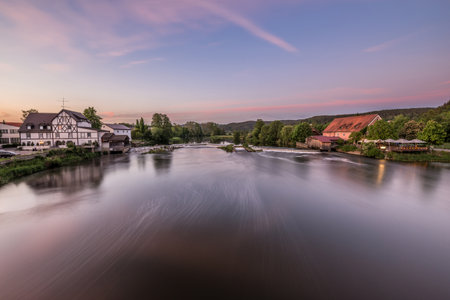 Sunset over the river Neckar in Thuringia, Germany