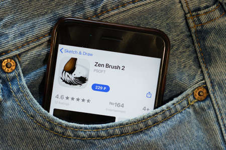 New York, USA - 15 May 2020: Zen Brush 2 mobile app logo on phone screen, close-up icon, Illustrative Editorial.
