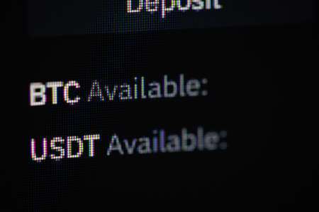 Shallow depth of field footage with details of Bitcoin cryptocurrency on a crypto exchange app, on a digital screen.