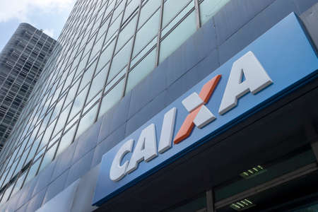 Sao Paulo, Brazil - december 29 2019 - Building and logo of bank branch of Caixa Economica Federal ( CEF ). Is a financial institution, in the form of a public company of the Brazilian federal government.