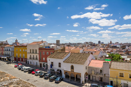 Badajoz, Spain - 24 June 2022: Panorama of the upper city of Badajoz