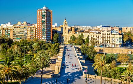 Serranos Bridge and Santa Monica Church in Valencia - Spain