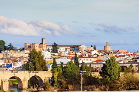 Panorama of Badajoz overlooking the Guardiana river, Extremadura of Spain