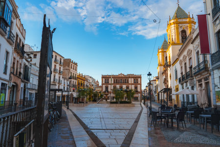 Historic Plaza and Church with Bell Tower in Ronda, Spain