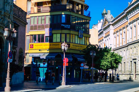 Seville Spain August 10, 2021 Facade of a building in the streets of Seville, an emblematic city and the capital of the region of Andalusia, in the south of Spain