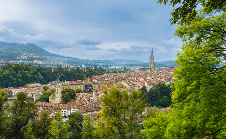 Bern, Switzerland - July 27, 2019: Panoramic view at sunny summer day.