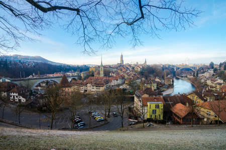 Bern city landscape with Aare River Swiss, Bern-Mittelland district, Switzerland.
