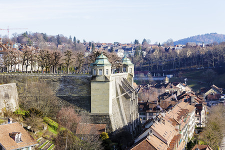 BERN, SWITZERLAND - DECEMBER 22, 2015: Muenster platform is a rectangular square, surrounded by balustrades made of sandstone and two corner pavilions, nowadays is the viewing platform and park area