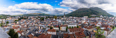 Panorama of the city of Lourdes in the Hautes Pyrenees, Occitanie, France
