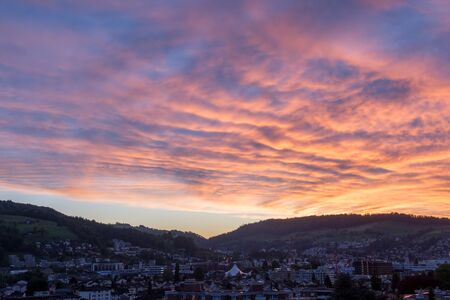 Sunset over the old town of Ennetbaden in Switzerland, image taken from castle hill
