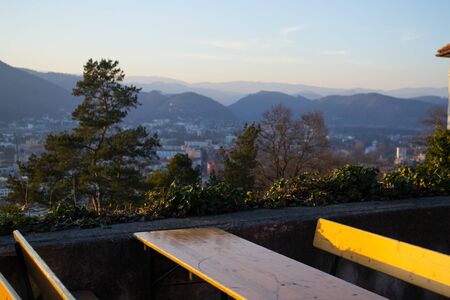 Panorama from a height. Sunset in the city of Graz, Austria.