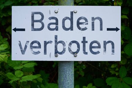 HUSUM, GERMANY June 23, 2020 A sign saying No bathing in the port