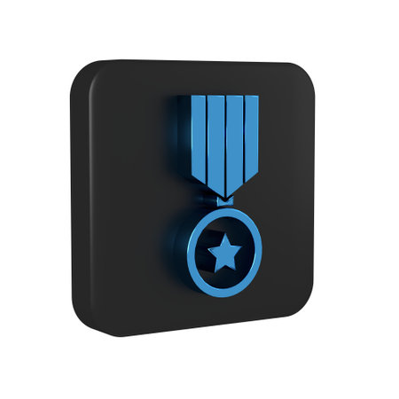 Blue Military reward medal icon isolated on transparent background. Army sign. Black square button..