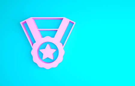 Pink Medal icon isolated on blue background. Winner symbol. Minimalism concept. 3d illustration 3D render