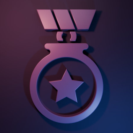 Purple Medal with star icon isolated on purple-blue background. Winner achievement sign. Award medal. Minimalism concept. 3D render illustration.